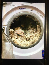 Стирали пуховую подушку, которая лопнула. ВсЁ оперативно мастер достал из машинки. Почистил, хотя это довольно кропотливая работа. Всем совет Не стирайте подушки в машинках)